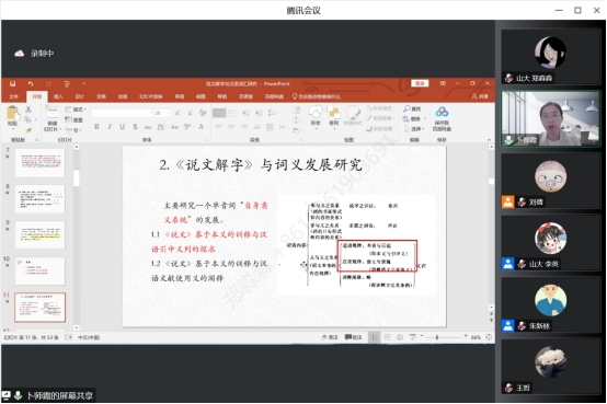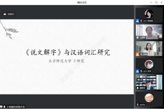 12月4日上午9时,北京师范大学卜师霞教授应我院刘倩老师的邀请,做客我院名师大讲堂,以腾讯会议为平台为校区师生作出题为“《说文解字》与汉语词汇研究”的学术报告。讲座由朱新林老师主持,除本校师生外,还有来自四川大学、武汉大学、中国社会科学院等其他院校的近百名师生参与本次活动。