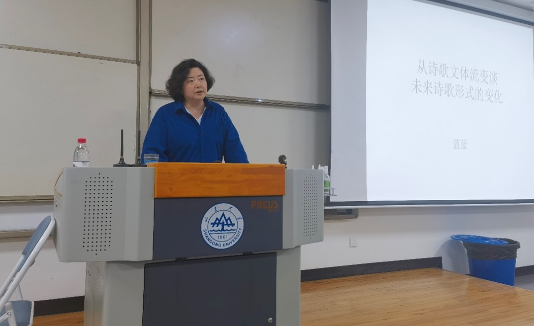 10月23日晚六点半,著名诗人蓝蓝应邀做客世俱杯买球官网网站名师大讲堂,主讲题为“从诗歌文体流变谈未来诗歌形式的变化”的学术报告。世俱杯买球官网网站亚思明教授主持报告会,学院师生共同聆听了此次讲座。