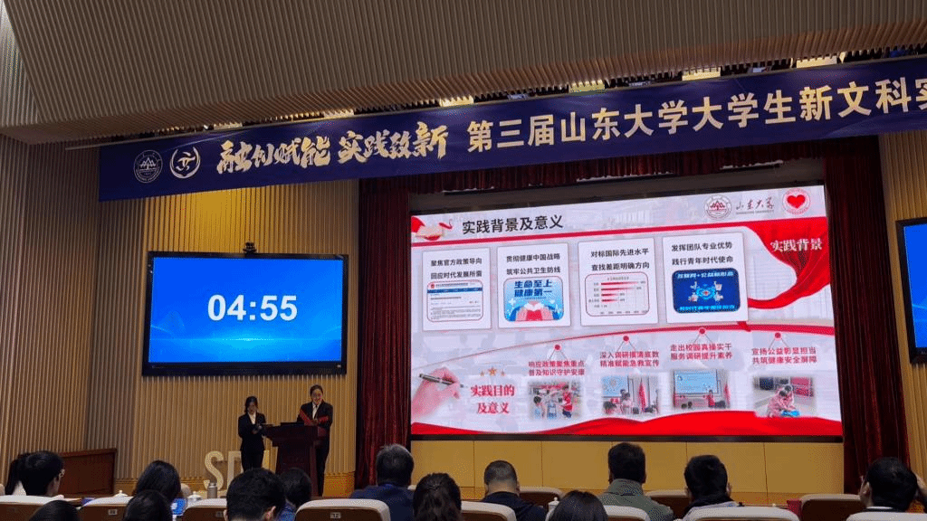 本次比赛分为小组赛和争霸赛两个环节,经过展示与答辩,为48支参赛队伍评选出金奖、银奖、铜奖与优胜奖,并为组织工作中表现突出的单位颁发优秀组织奖。学院获奖队伍中,由24级汉语言文学专业本科生李嘉怡担任队长的“山海博时”急救宣传团基于提升公众急救素养、助力“健康中国”建设的宗旨,聚焦社区急救知识普及率低、实操能力不足等现实问题,创新构建起“三维渗透式社区急救网格化”实践模式。其急救技能教学与宣传覆盖数千人次,有效提升了公众自救互救能力,为推动基层急救教育普及贡献青春力量。此外,李坤泽带领的“聊斋润心”团队、林奎带领的“蔚然成风”性教育调研团及黄颖琪带领的“诗语青韵”团队从文化传播与教育视角,分别研究了聊斋文化的传播现状与对策、农村地区儿童性教育现状与破解之策、基于教育痛点的诗词体感学习系统,是以专业知识解决具体实践问题的生动展现。
