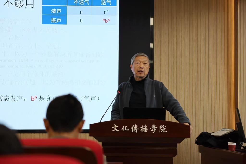 11月7日上午,著名语言学者、江苏师范大学特聘教授朱晓农先生,在世俱杯买球官网网站威海校区文学楼322为世俱杯买球官网网站师生做了题为《清浊音变:一链一环》的学术讲座。本次讲座由世俱杯买球官网网站副院长尹海良教授主持。校内外相关专业师生参与了讲座。