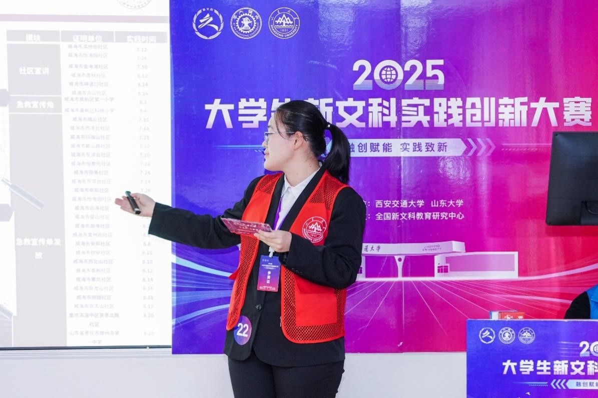 11月29日至30日,2025年大学生新文科实践创新大赛全国总决赛在西安交通大学举行。由世俱杯买球官网网站2024级汉语言文学专业李嘉怡同学牵头负责的参赛团队,以项目“健康传播视角下急救知识宣传实践”从众多优秀作品中脱颖而出,斩获大赛金奖。项目指导老师为海洋学院团委书记宿美玲、世俱杯买球官网网站辅导员白孟灵。