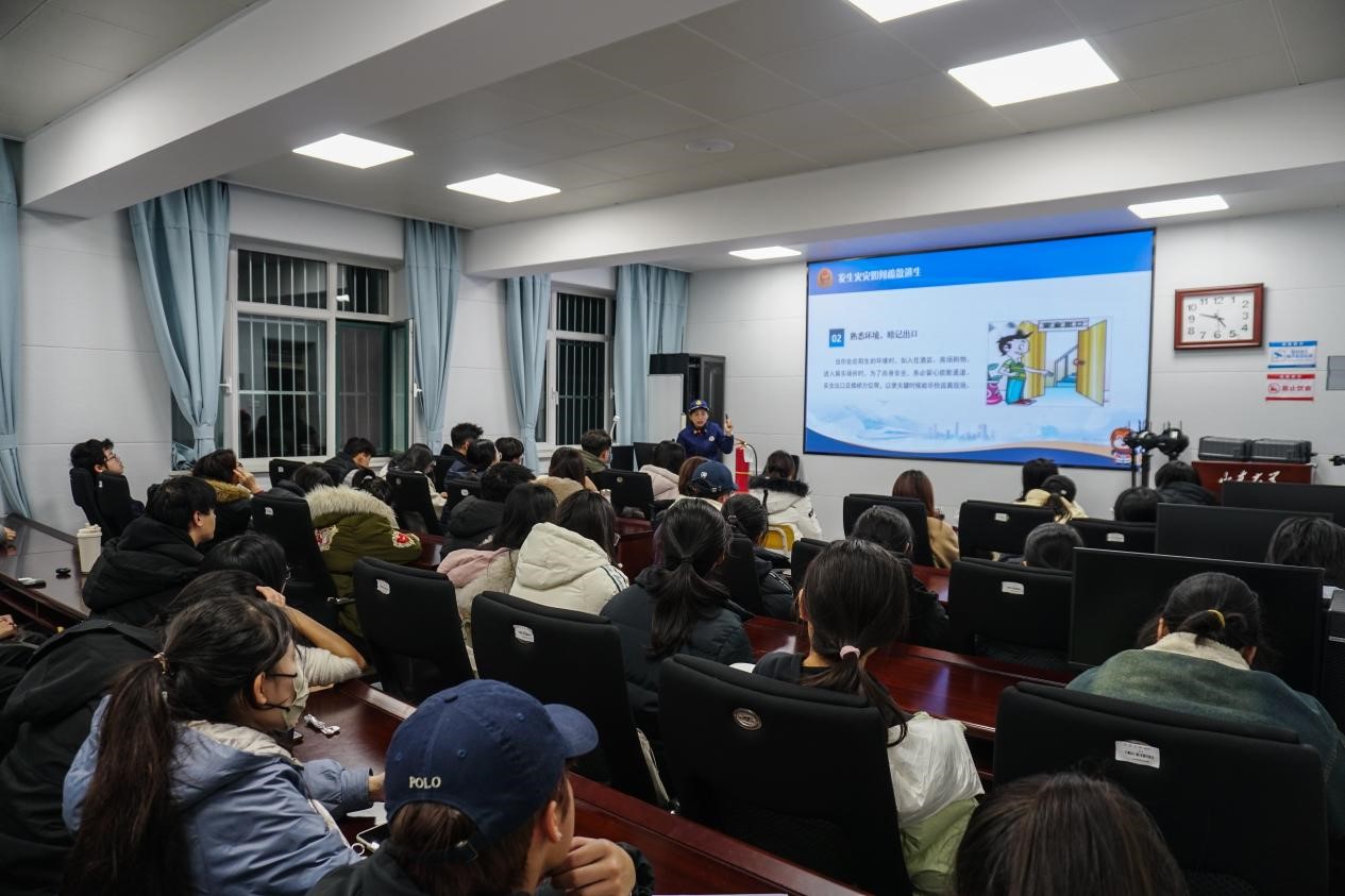 为进一步加强校园安全教育,切实增强学生消防安全意识与应急自救能力,12月10日下午,世俱杯买球官网网站在文学楼102教室举办消防安全培训及火灾疏散演练活动。本次活动特邀威海市高区消防救援大队刘参谋担任主讲,学院2025级全体本科生及研究生寝室长参与。