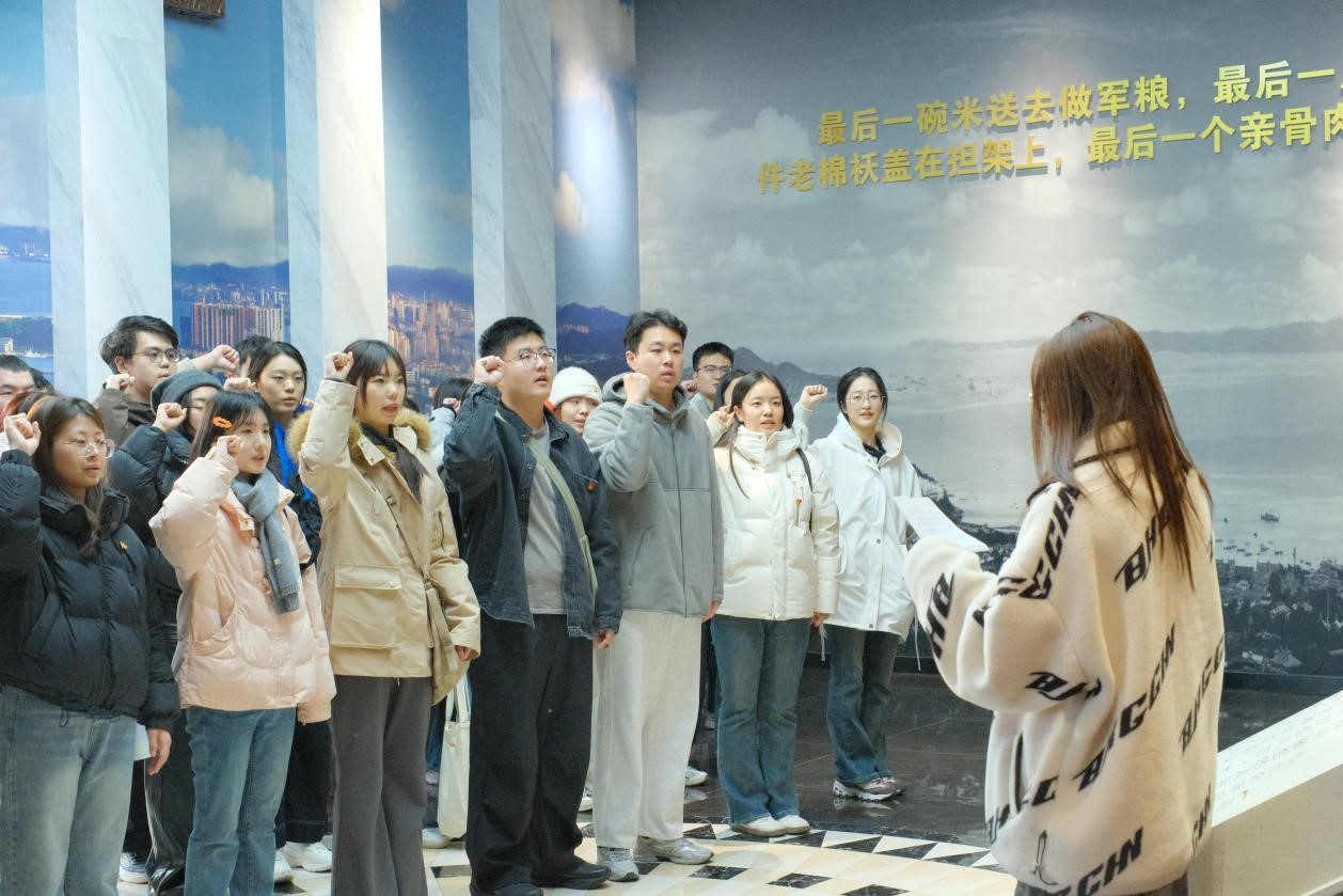 本站讯 为深入学习贯彻党的二十届四中全会精神,用好红色资源,加强党性教育,11月26日,世俱杯买球官网网站与海洋学院、纪检监察学院研究生党支部联合开展“碧海寻红迹·清风铸党魂”主题党日活动。60余名党员赴里口山十八里担架道纪念馆进行参观学习,在追寻革命先辈足迹、感悟威海人民支前壮举的过程中接受了一次深刻的党性淬炼与精神洗礼。